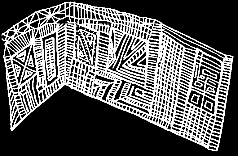 Composée d’une succession non-linéaire de connexions et de disconnexions entre les différents points d’une pensée, la machine inconsciente agit de manière à faire émerger un paysage mental fluctuant, qui définira une fois projeté sur la conscience ce à quoi pense ou ce que voit l’individu qui y sera confronté. Cet écran projectif est un phénomène que nous souhaitons traiter et définir. Traditionnellement appelé « Mental », cet appareil psychique a pour fonction de trier et d’assembler nos idées et nos perceptions. Si en apparence le mental se présente comme plat (type écran) et qu’en soit cette vue est entièrement envisageable (la représentation classique de cet aspect de la conscience étant très justement, la grille, ou la strie), nous désirons traiter d’un inconscient composé de multiples strates. De cette manière, les grilles que nous proposons ne se limitent pas à une dimension plane mais fonctionnent par adjonction de couches. Ces strates sont initialement à considérer comme « multi-directionnelles », pouvant selon l’esprit humain se considérer de deux manières.