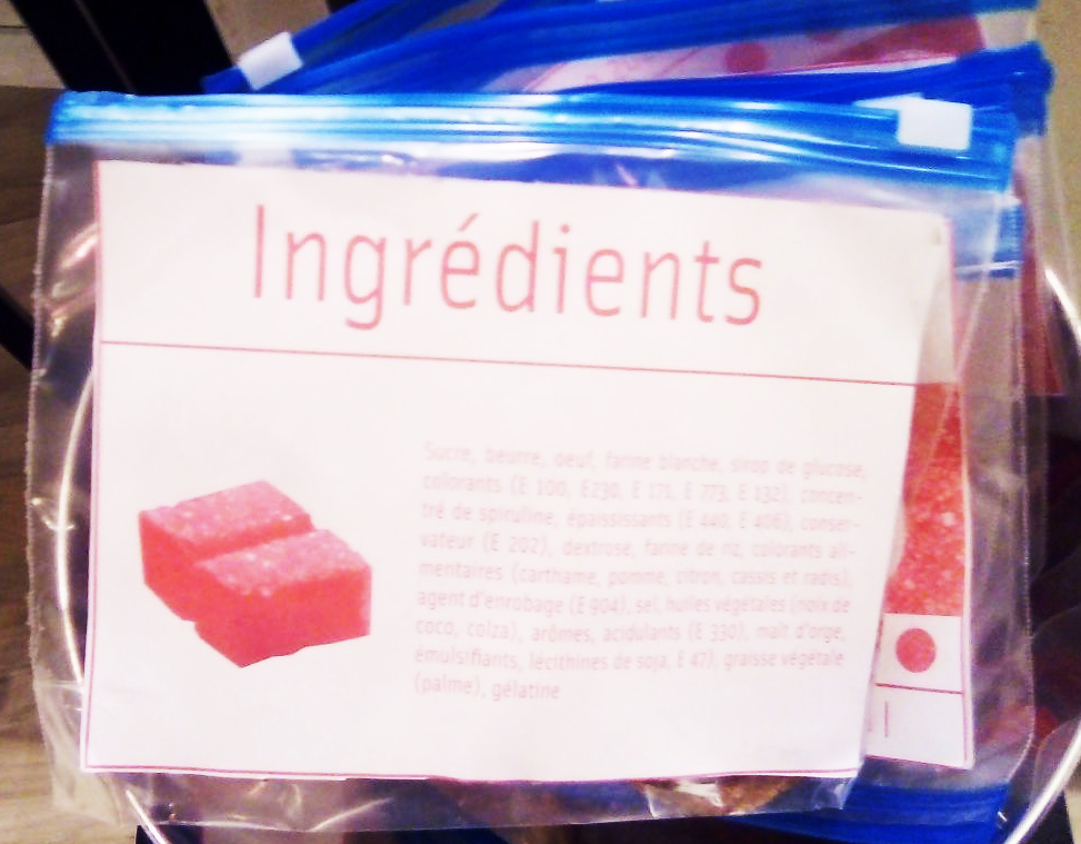 Il y avait deux habits roses à donner, intitulés « Sur-Titrages », sur lesquels étaient écrit : « Opération » et « Sucre à Cote ». Il s’agit en réalité du titre de l’intervention.