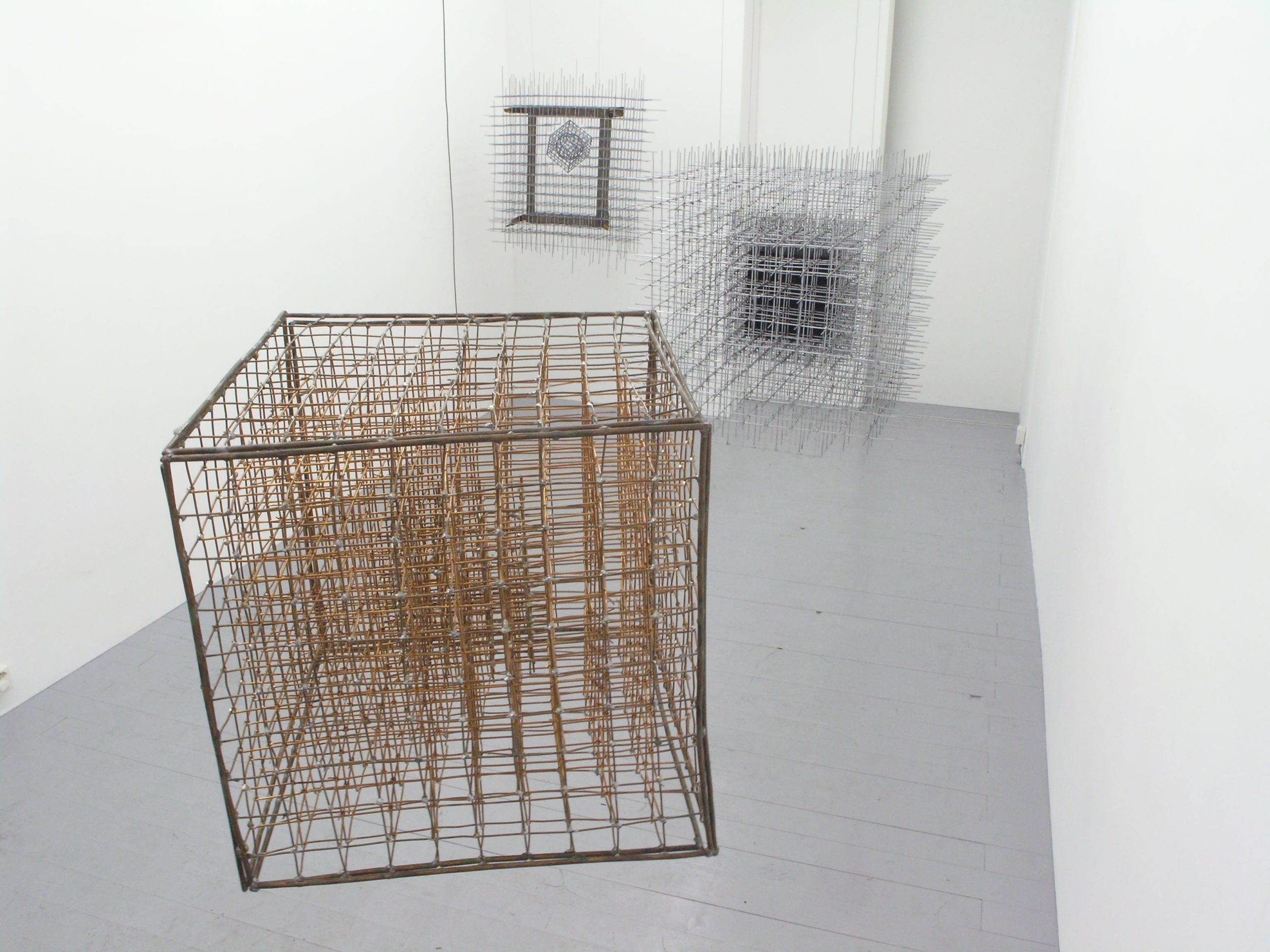 Toutes réalisées au travers des moyens proposés par le métal, ces premières pièces possèdent, par-delà leur nature (matériaux), plusieurs récurrences : la grille, le cube, la mise en abîme. Ces trois aspects sont à disséquer parallèlement aux analyses plus profondes inhérentes à chacune de nos pièces.