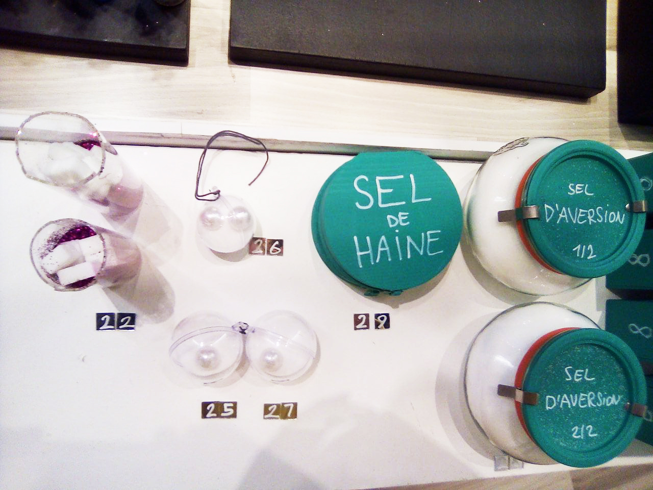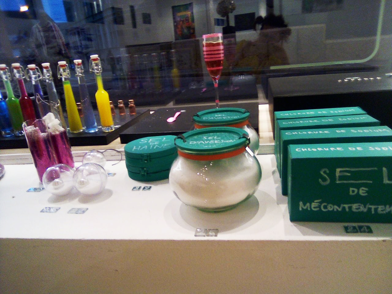 Dans le cadre de l’exposition, il était possible de voter avec des ready-mades activables. Par exemple, vous pouviez poser un Sucre Blanc (0,80.-) devant une oeuvre si vous l’aimiez bien. Un Sucre Rose (1,80.-) devant celle que vous adoriez. Un Masta Sucre (8.-) devant une oeuvre que vous trouviez géniale. Un Sucre Historique (18.-) devant une oeuvre que vous considériez comme historique. Un Plastique de 8 Sels (0,18.-) devant une oeuvre que vous n’aimez pas trop, une Poignée de Sel (0,48.-) devant une oeuvre que vous n’aimez pas du tout, un Sel d’Indifférence (4,80.-), un Sel de Mécontentement (18.-), un Sel d’Antipathie (22,80.-), un Sel de Répulsion (24,80.-), un Sel d’Aversion (28,80.-), un Sel de Haine (48,80). Tous ces objets pouvaient être achetés et placés devant les oeuvres. Ils influençaient le prix à l’achat et permettaient de voir quelles oeuvres avaient du succès ou pas. Il était même possible d’acheter des Boîtes de 80 Sucres, à répartir entre les oeuvres ou à placer devant une seule oeuvre.